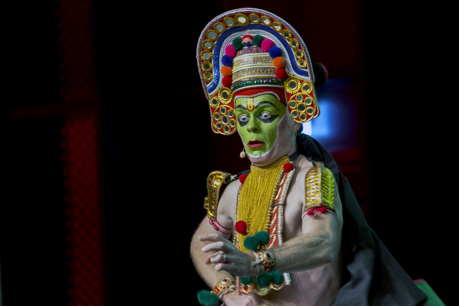 From October 15th till December 9th I continued my studies in India. Along with my teacher Kalamandalam Prabhakaran Ashan I repeated around 150 lines of Kalyāṇasaugandhikam and presented it at the Language Institut Weli in Kochi on November 21st as well as during the annual festival at Sree Poornathreyeesa Temple at Trpunithura on December 1st. After finishing the lines of Kunchan Nambiar I've presented 10 minutes of my translation into German language. I'm very happy and feel honored being part of the festival for the very first time. My program was supported from the German cultural institute Goethe-Zentrum Trivandrum/Kochi - I am thankful for that. This temple is giving Thullal artists since many years a lot of support, on every day during the festival there are 3 different Thullal programmes shown. Kalyāṇasaugandhikam I performed for the first time in Kerala in December 1992.